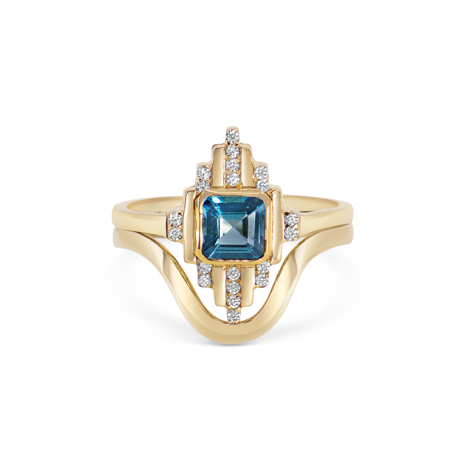 The deep curve of this wedding band was designed to fit perfectly around my Levels of Light Engagement Ring and complete this Art Deco inspired wedding stack.