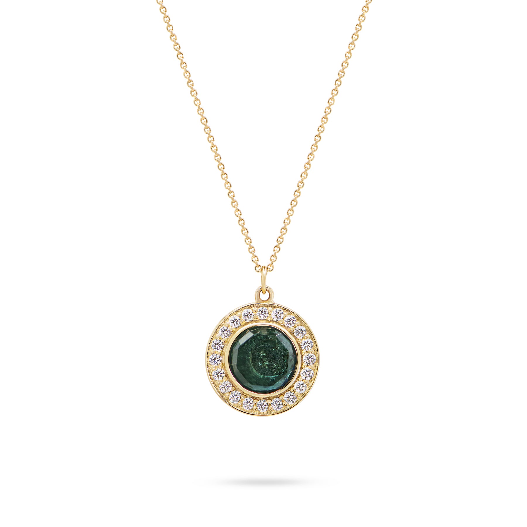 Measurements: Pendant diameter: 13.75 mm. Chain: 18-inch 14ct yellow gold.